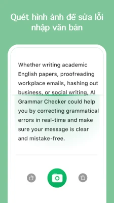 AI Grammar và Spell Checker còn nâng tầm tiện ích với tính năng quét văn bản OCR tích hợp. Chỉ cần chụp ảnh, ứng dụng sẽ tự động nhận diện và chuyển đổi văn bản từ hình ảnh sang dạng có thể chỉnh sửa, đồng thời tức thì sửa mọi lỗi ngữ pháp và chính tả mà không cần bạn phải gõ thủ công. Với AI Grammar và Spell Checker, khả năng viết tiếng Anh của bạn sẽ không ngừng được nâng cao, biến ngữ pháp từ một thách thức thành một lợi thế để bạn tự tin thể hiện bản thân trong mọi tình huống.