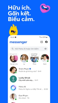 Messenger giúp bạn kết nối mọi người ở bất cứ đâu. Giữ liên lạc với bạn bè, gia đình, khám phá sở thích và xây dựng cộng đồng. Thể hiện cá tính độc đáo của bạn theo nhiều cách, không chỉ qua lời nói, tất cả trong một ứng dụng miễn phí.