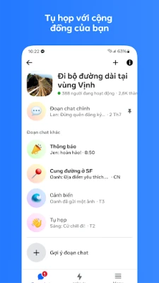 Messenger là cầu nối mạnh mẽ, giúp bạn duy trì liên lạc với những người thân yêu và cả thế giới xung quanh một cách dễ dàng. Dù bạn muốn kết nối với bạn bè trên Facebook, gia đình ở xa hay các mối quan hệ mới, ứng dụng này cho phép bạn trò chuyện và gọi điện không giới hạn, không cần đến số điện thoại. Khám phá một không gian giao tiếp liền mạch, nơi mọi cuộc trò chuyện đều trở nên gần gũi và ý nghĩa hơn, từ những tin nhắn đơn giản đến những cuộc gọi nhóm sôi nổi.